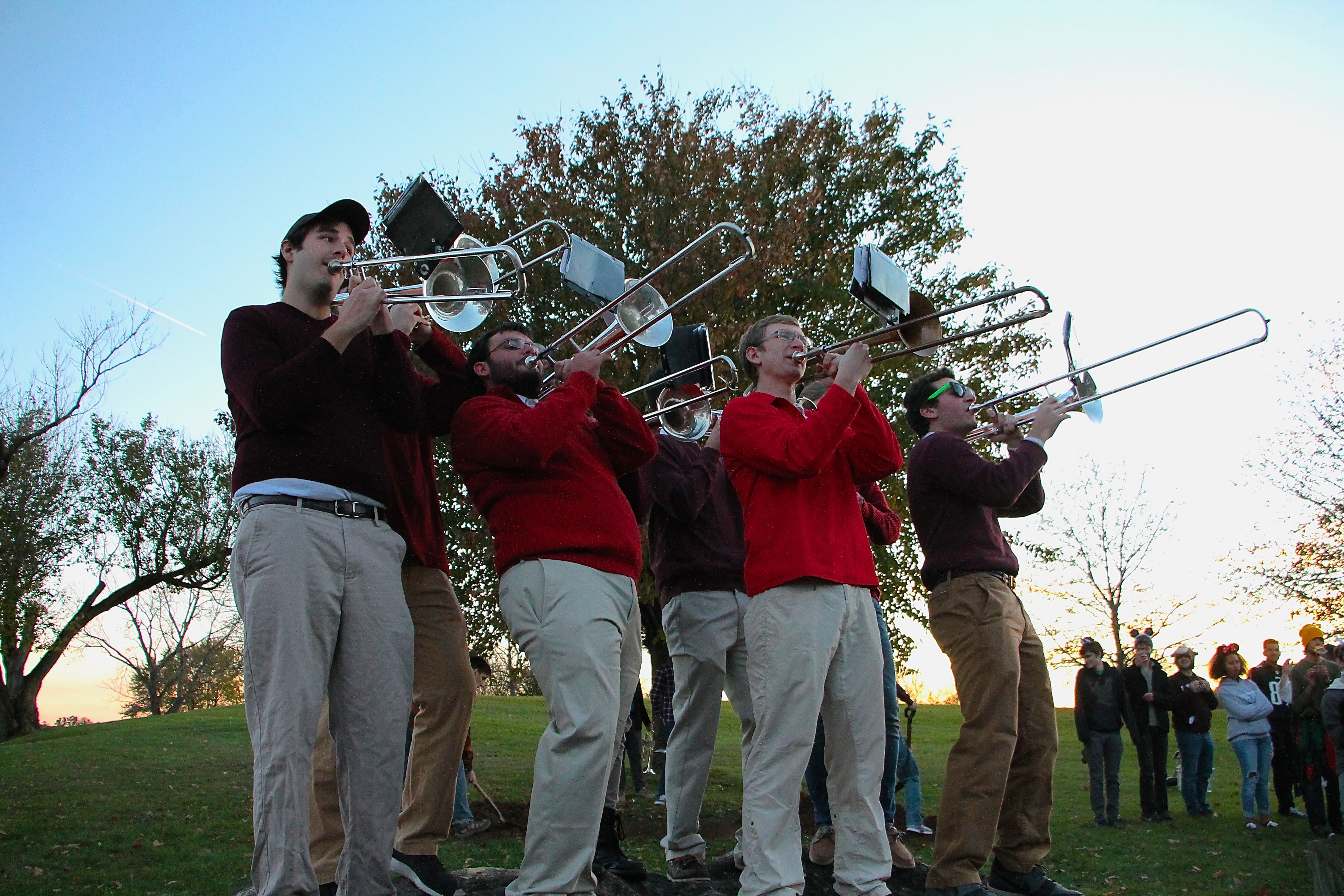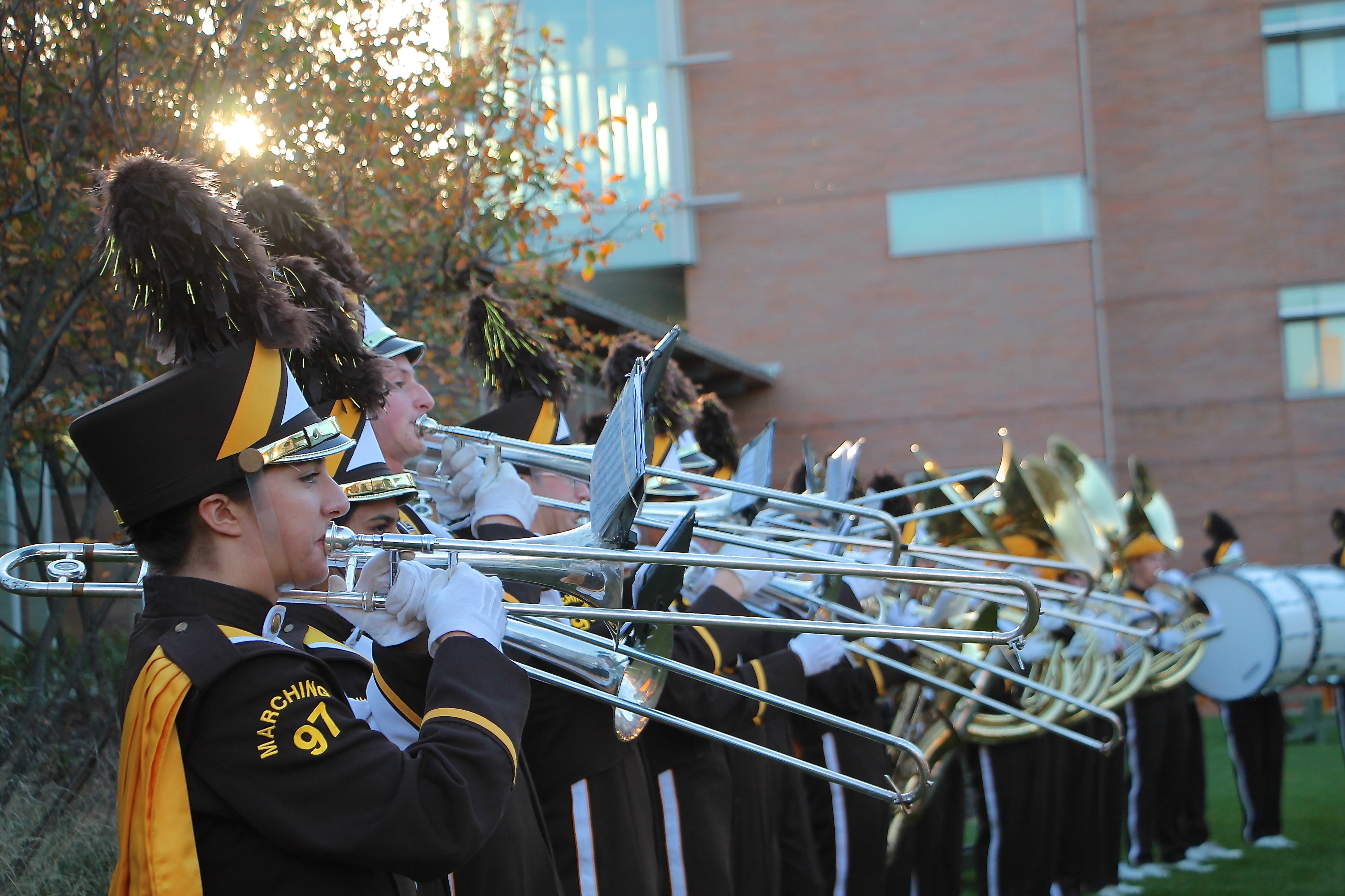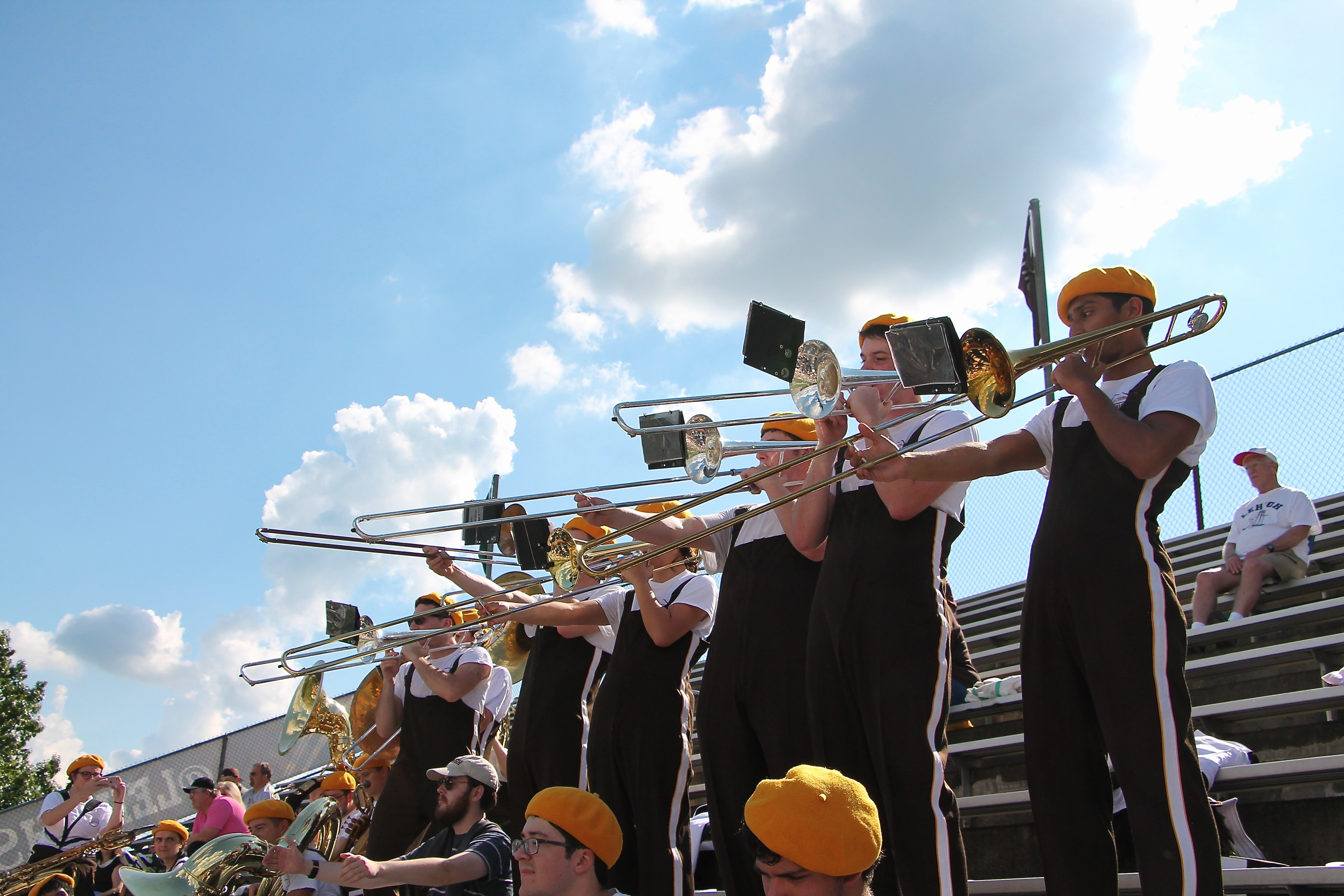 Rank 1 is the home of the trombones, an exuberant and welcoming group who are especially adept at causing a ruckus whenever needed. Full of psyche and demonstrating fancy flashes on the field, the trombones are hard to miss. They can be recognized from a long distance by the distinct strains of "Underbone."