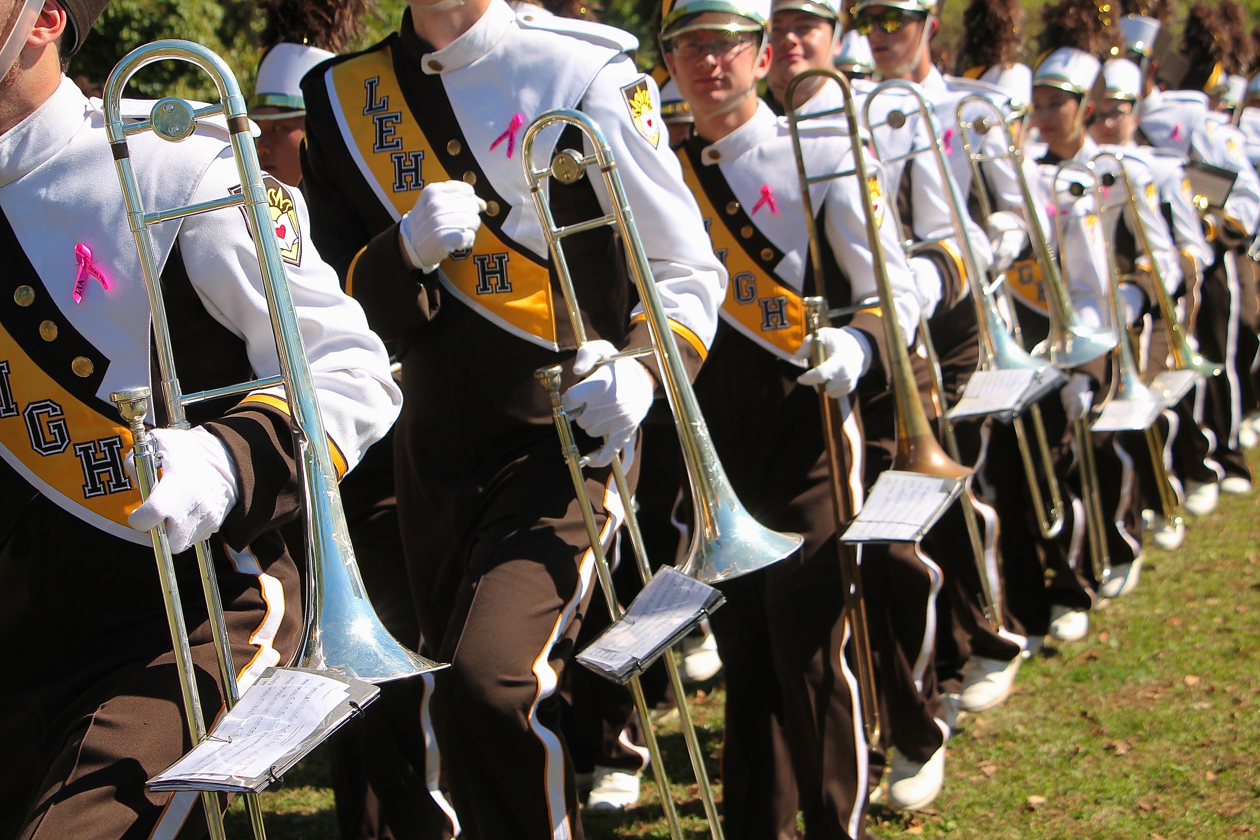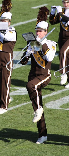 Rank 1 is the home of the trombones, an exuberant and welcoming group who are especially adept at causing a ruckus whenever needed. Full of psyche and demonstrating fancy flashes on the field, the trombones are hard to miss. They can be recognized from a long distance by the distinct strains of "Underbone."